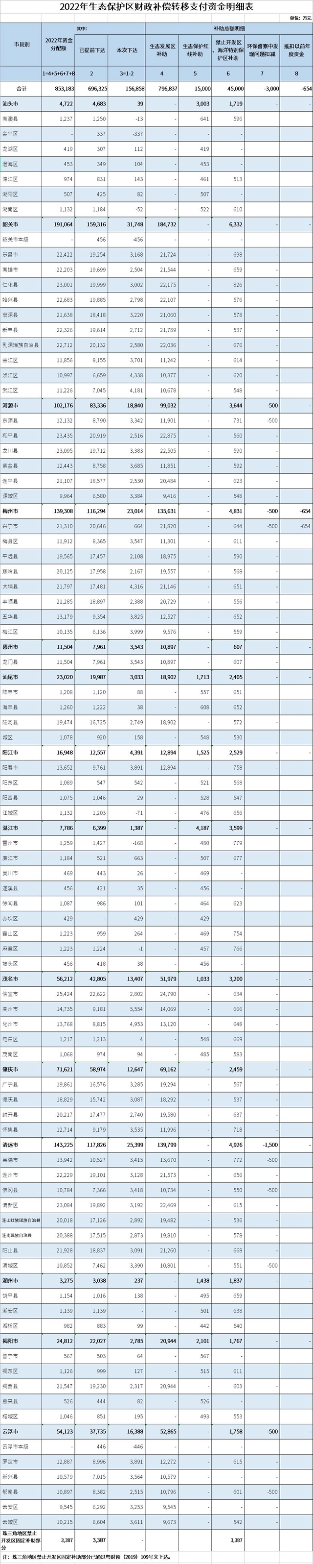 廣東省財政廳關于清算下達2022年生態(tài)保護區(qū)財政補償轉移支付資金的通知粵財預〔2022〕57號 有關地級市財政局,有關財政省直管縣(市)財政局: 根據《廣東省生態(tài)保護區(qū)財政補償轉移支付辦法》(粵財預〔2019〕78號,以下簡稱《辦法》)等有關規(guī)定,現清算下達2022年生態(tài)保護區(qū)財政補償轉移支付資金(...