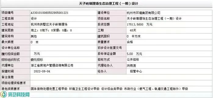 來源 | 環(huán)衛(wèi)科技網(wǎng)作者 | ivy筆者昨日注意到,杭州市人民政府網(wǎng)站8月5日公布了“天子嶺填埋場(chǎng)生態(tài)治理工程(一期)設(shè)計(jì)招標(biāo)核準(zhǔn)登記”,這意味著坊間流傳已久的杭州天子嶺生活垃圾填埋場(chǎng)生態(tài)治理工程即將進(jìn)入實(shí)操階段。從這份核準(zhǔn)登記文件看,天子嶺填埋場(chǎng)生態(tài)治理工程建設(shè)單位為杭州市環(huán)境集團(tuán)有限公司,投資總...