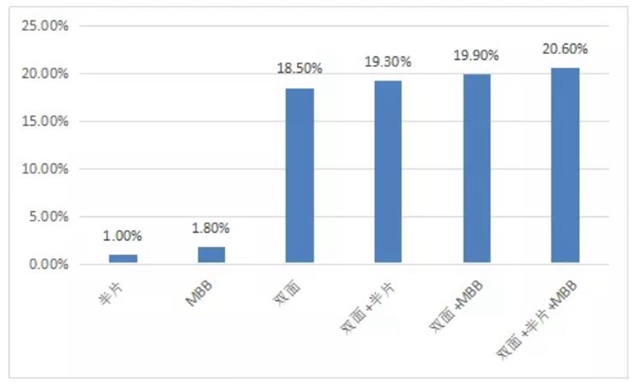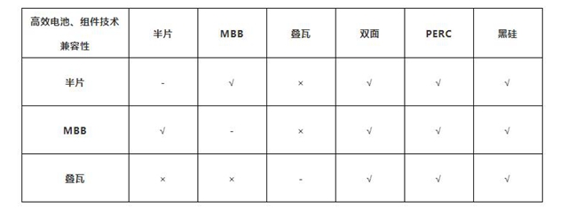 目前已成熟或即將成熟的高效組件技術(shù)之間還可以相互疊加,比如:雙面、半片與MBB技術(shù)的兼容性非常強。