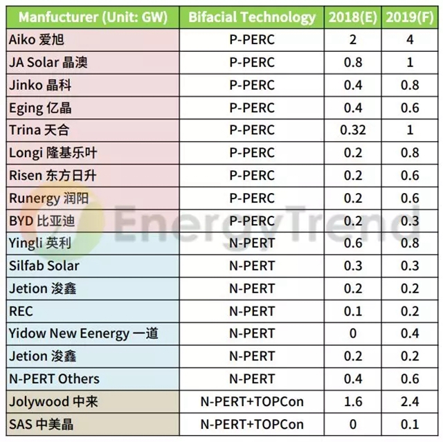 原標(biāo)題:EnergyTrend:2019年雙面組件年邁入成長年 規(guī)劃產(chǎn)能將達(dá)25.74GW