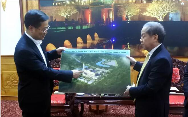 簽約儀式前,王天義總裁與潘玉壽主席就順化項(xiàng)目投資合作進(jìn)行了坦誠(chéng)友好的交流。王天義總裁表示,光大國(guó)際是亞洲最大的垃圾發(fā)電投資運(yùn)營(yíng)商,積累了世界一流的技術(shù)與管理經(jīng)驗(yàn),剛投產(chǎn)運(yùn)營(yíng)的芹苴項(xiàng)目為光大國(guó)際進(jìn)一步開拓越南市場(chǎng)提供了寶貴的經(jīng)驗(yàn),我們對(duì)越南投資環(huán)境也充滿信心。我們有信心有能力將順化項(xiàng)目建設(shè)得更快更好,并不斷擴(kuò)大在越南的投資合作,希望雙方加快合同個(gè)別細(xì)節(jié)談判,早日開工建設(shè)。潘玉壽主席對(duì)此表示完全贊同,并就順化項(xiàng)目提出兩點(diǎn)希望,一是希望光大國(guó)際將順化項(xiàng)目建成環(huán)境優(yōu)美、品質(zhì)優(yōu)異的垃圾發(fā)電項(xiàng)目,二是希望雙方鼎力配合,加快項(xiàng)目建設(shè)進(jìn)程,盡快實(shí)現(xiàn)投產(chǎn)運(yùn)營(yíng)。簽約儀式后,王天義總裁還向潘玉壽主席展示了順化項(xiàng)目設(shè)計(jì)效果圖。