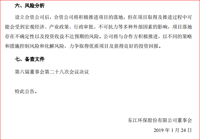 2019年1月24日,東江環(huán)保股份有限公司董事會發(fā)布公告稱,擬出資成立合資公司,打造一家專業(yè)化的環(huán)保服務企業(yè)。
