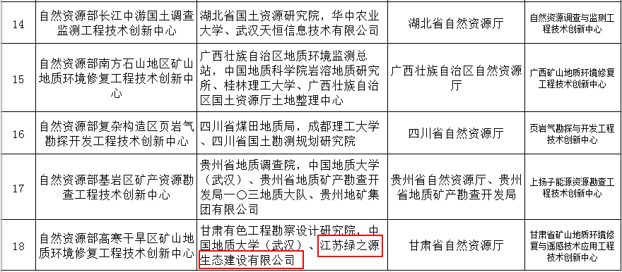據(jù)了解,2019年2月2日,自然資源部辦公廳公開發(fā)布《自然資源部辦公廳關(guān)于公布工程技術(shù)創(chuàng)新中心建設(shè)名單的通知》,自然資源部工程技術(shù)創(chuàng)新中心建設(shè)名單中,江蘇綠之源生態(tài)建設(shè)有限公司赫然在列。