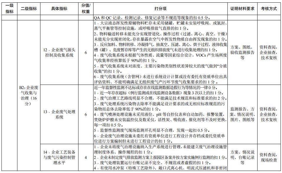 3﹒企業(yè)應(yīng)根據(jù)各類廢氣特性、產(chǎn)生量、污染物濃度、溫度、壓力等因素綜合分析選擇合適、高效的末端處理工藝,采用吸附、催化凈化、焚燒等工藝的應(yīng)符合相關(guān)標(biāo)準(zhǔn)規(guī)范要求;無(wú)相應(yīng)標(biāo)準(zhǔn)規(guī)范的,污染物總體去除率不低于90%。廢氣治理設(shè)施應(yīng)納入生產(chǎn)系統(tǒng)進(jìn)行管理,配備連續(xù)有效的自動(dòng)監(jiān)測(cè)以及記錄設(shè)施,提高廢氣處理的自動(dòng)化程度,噴淋處理設(shè)施應(yīng)配備液位、PH等自控儀表、采用自動(dòng)加藥。園區(qū)實(shí)行統(tǒng)一的LDAR管理制度,統(tǒng)一評(píng)估企業(yè)LDAR實(shí)施情況。