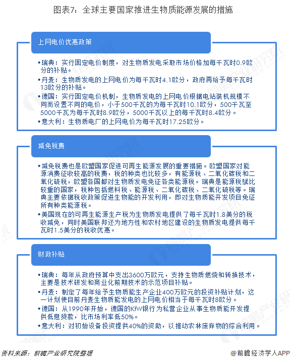 歐盟是當(dāng)前全球生產(chǎn)和消費(fèi)生物質(zhì)燃料最多的國(guó)家,美國(guó)排在全球第二位,但與歐盟在利用規(guī)模上仍存在較大差距。這兩大主體引領(lǐng)者全球生物質(zhì)能源的發(fā)展。對(duì)比各國(guó)的政策和法規(guī),上網(wǎng)電價(jià)優(yōu)惠、稅費(fèi)減免和財(cái)政補(bǔ)貼是最為常用的激勵(lì)性政策手段。