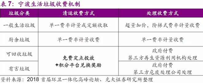 以寧波的生活垃圾收費(fèi)機(jī)制為例,寧波市于2018年3月底出臺了《寧波市生活垃圾分類實施方案(2018-2022年)》,方案明確了寧波市未來五年的垃圾分類工作目標(biāo),同時明確未來將以“使用者付費(fèi)”為原則,出臺差別化的生活垃圾處理收費(fèi)制度。而在寧波計劃推行的收費(fèi)制度中,亮點(diǎn)在于生活垃圾和廚余垃圾的按費(fèi)率計量收費(fèi),以及可回收垃圾和有害垃圾的費(fèi)用豁免+積分獎勵原則。