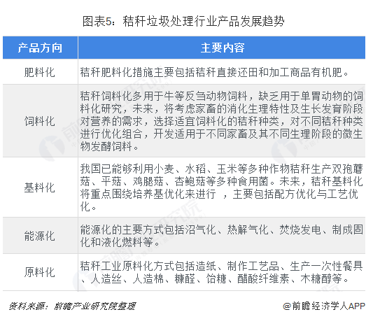 其次,在產(chǎn)品趨勢(shì)方面,秸稈綜合利用行業(yè)產(chǎn)品仍將圍繞“五化”展開(kāi),即秸稈肥料化、秸稈飼料化、秸稈能源化、秸稈原料化以及秸稈基料化。