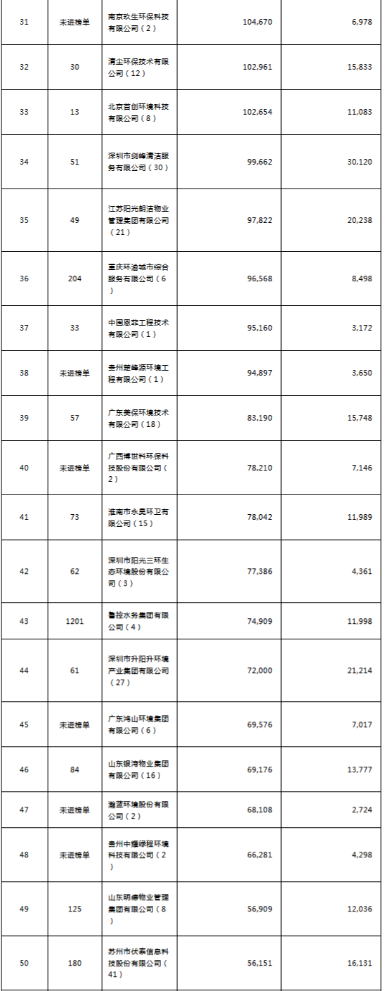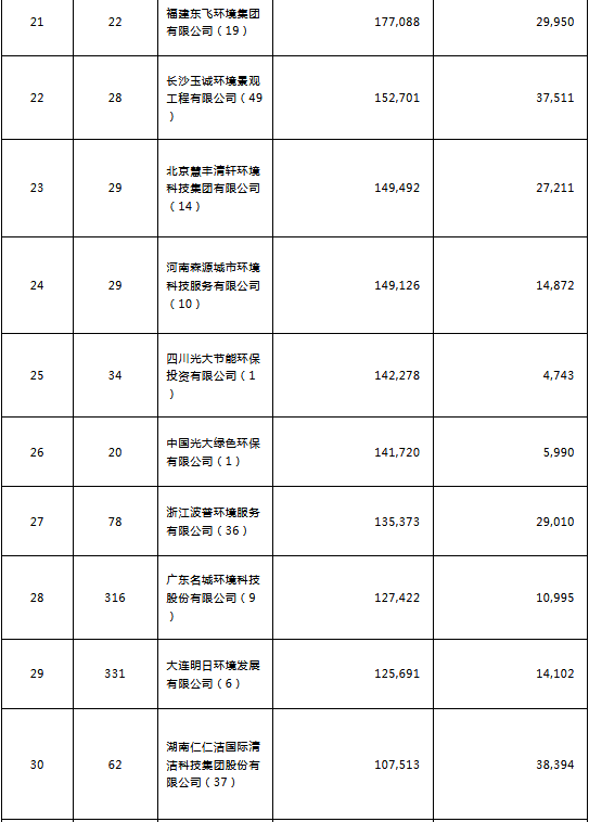環(huán)境司南2018年度環(huán)衛(wèi)服務(wù)企業(yè)(簽約能力)百強(qiáng)榜