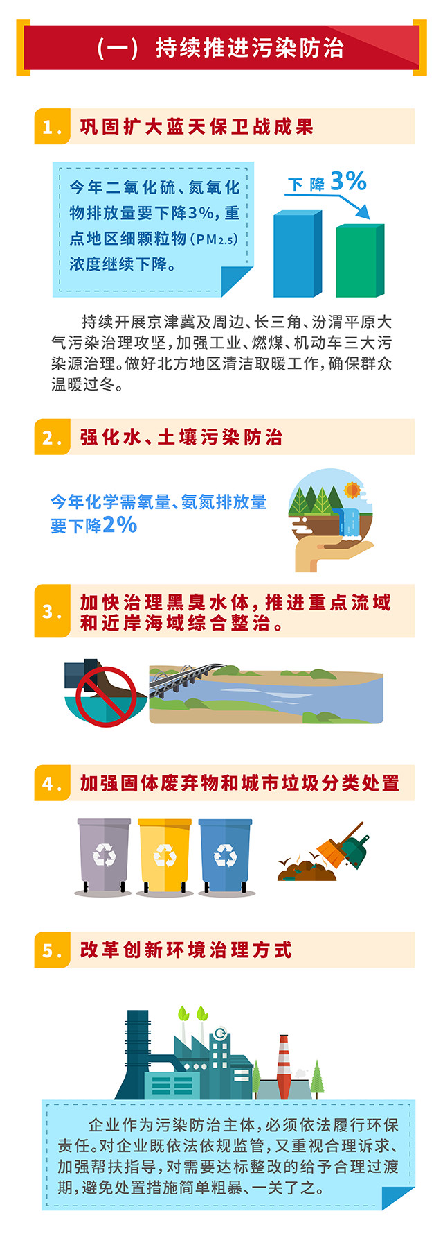 近日,生態(tài)環(huán)境部官方微信整理了今年政府工作報(bào)告有關(guān)生態(tài)環(huán)境治理方面的內(nèi)容,包括鞏固擴(kuò)大藍(lán)天保衛(wèi)戰(zhàn)的成果、加快黑臭水體的污染防治等,詳情如下: