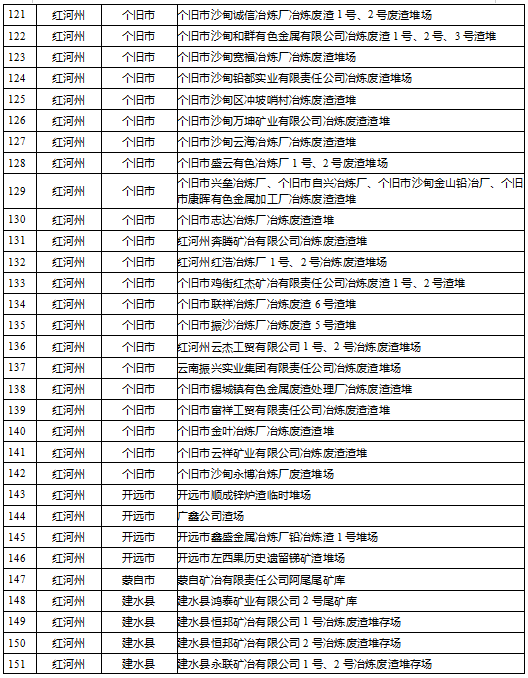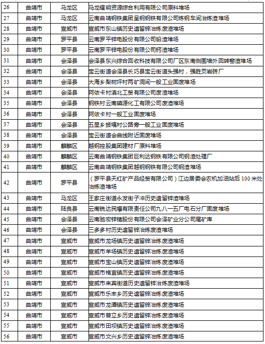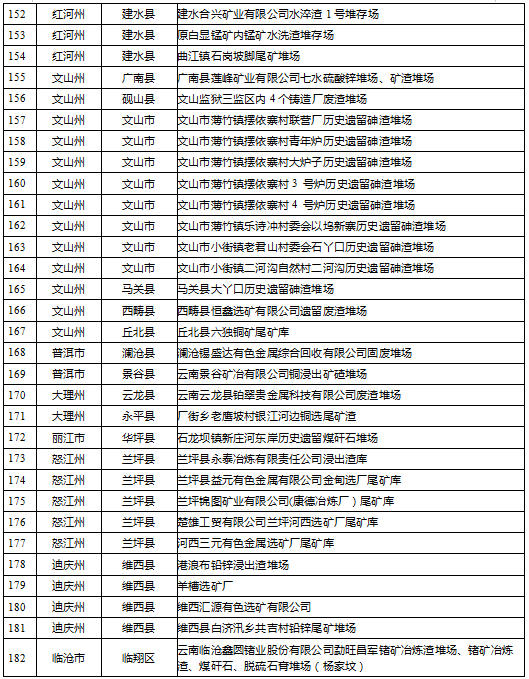 云南省工業(yè)固體廢物堆存場所環(huán)境整治清單(185個)
