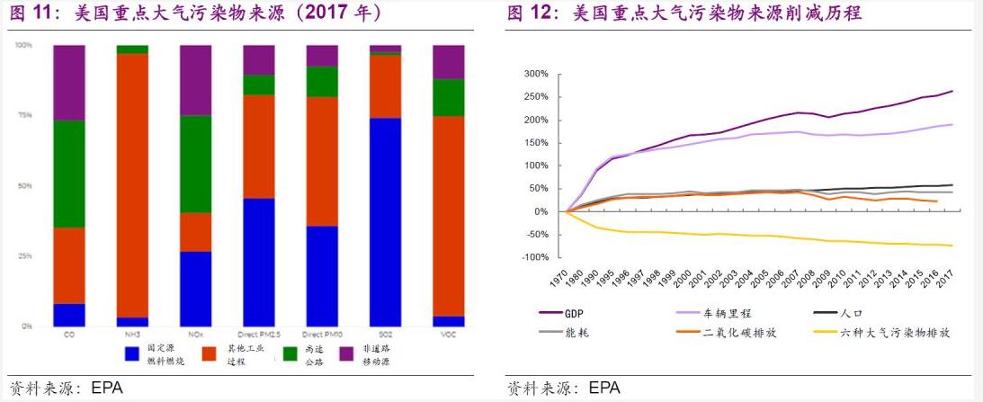 美國新車、卡車和非公路發(fā)動機使用最先進的排放控制技術(shù)。EPA要求,美國2030年與1970年相比,新車、SUV、皮卡、新型重型卡車和公共汽車對普通污染物的清潔度需高出99%;新的商業(yè)海洋船舶(非遠洋航行)對顆粒物排放的清潔度需高出90%。因此,在車輛制造領(lǐng)域,清潔排放設(shè)備的制造、新能源汽車方面依然有較強的需求。