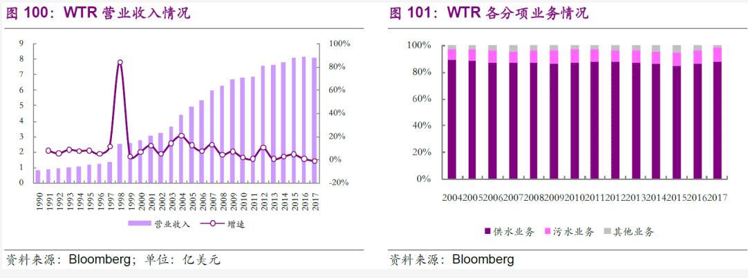 公司的供水、污水業(yè)務(wù)受制于美國水務(wù)市場化程度,內(nèi)生發(fā)展的確具有一定天花板,這是政策所決定的;但就經(jīng)營層面上分析,營業(yè)收入及盈利狀況較為穩(wěn)定也符合水務(wù)公司的核心特點,我們應(yīng)將此類公司視為典型的公用事業(yè)公司。