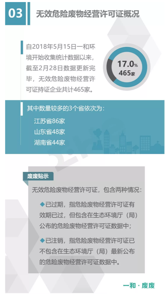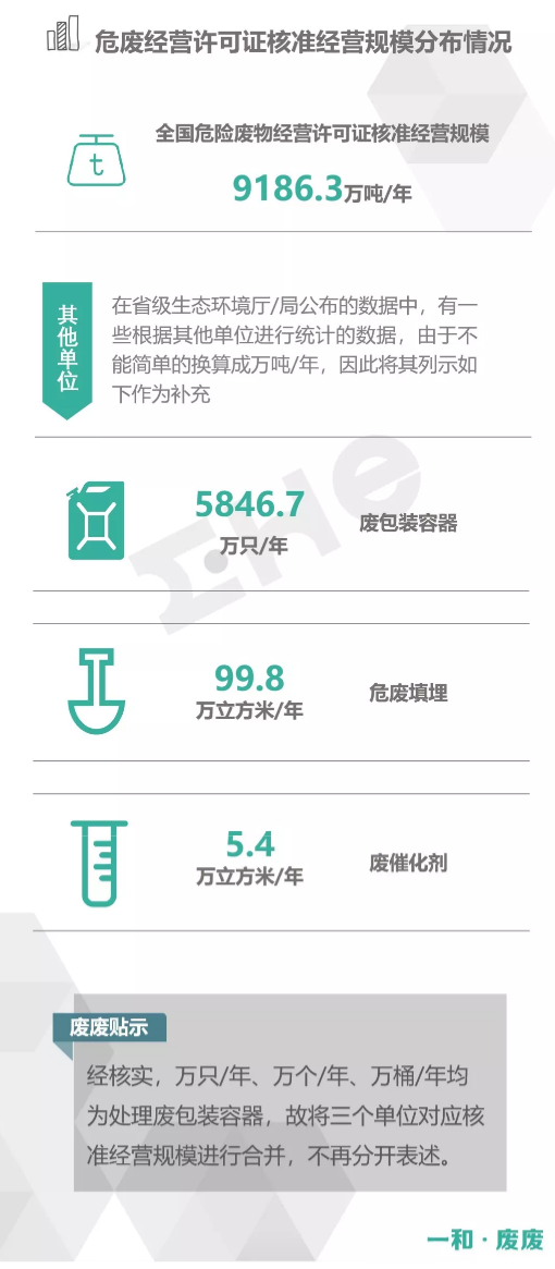 2.統(tǒng)計范圍:本次數(shù)據(jù)收集統(tǒng)計的范圍為省級生態(tài)環(huán)境廳(局)官方公布的持有危險廢物經(jīng)營許可證企業(yè)的數(shù)據(jù),因此由地級市發(fā)布的醫(yī)療廢物經(jīng)營許可證、收集經(jīng)營許可證,且未納入省級生態(tài)環(huán)境廳(局)公布數(shù)據(jù)的部分,并未計入統(tǒng)計數(shù)據(jù)中。