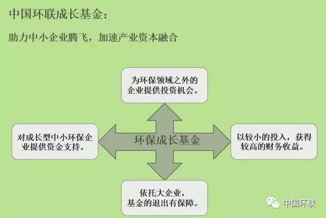 中國戰(zhàn)略性新興產(chǎn)業(yè)環(huán)保聯(lián)盟綠色金融專委會的成立將更好地為中國環(huán)聯(lián)會員企業(yè)貫徹綠色金融政策、對接金融服務(wù)產(chǎn)品,中國環(huán)聯(lián)針對不同的環(huán)保細(xì)分市場和產(chǎn)業(yè),分別成立“中國環(huán)聯(lián)成長基金”和“中國環(huán)聯(lián)并購基金”等環(huán)?;?,旨在以資本為紐帶,推動中國環(huán)聯(lián)會員企業(yè)在環(huán)保領(lǐng)域橫向和縱向的產(chǎn)業(yè)整合。