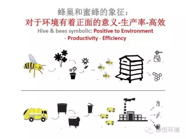 蜂巢狀玻璃幕墻的設(shè)計靈感來源于蜜蜂把花粉釀蜜的過程。設(shè)計師把每天奔波在城市中的眾多垃圾回收車輛比喻蜜蜂收集花粉的過程,把生活垃圾焚燒發(fā)電廠比喻蜂巢,將收集的生活垃圾在焚燒發(fā)電廠變成清潔能源的過程比喻蜜蜂釀蜜,非常形象的展現(xiàn)了康恒寧波鄞州垃圾焚燒發(fā)電廠的建造理念。