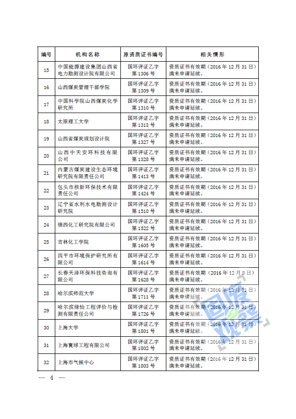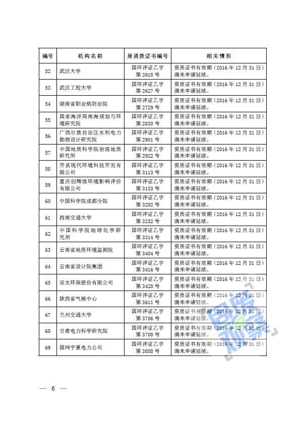 根據(jù)《建設(shè)項(xiàng)目環(huán)境影響評(píng)價(jià)資質(zhì)管理辦法》(環(huán)境保護(hù)部令第36號(hào))的有關(guān)規(guī)定,我部對(duì)建設(shè)項(xiàng)目環(huán)境影響評(píng)價(jià)資質(zhì)(以下簡(jiǎn)稱資質(zhì))證書有效期滿未申請(qǐng)延續(xù)的69家機(jī)構(gòu)資質(zhì)予以注銷(具體名單詳見附件)。