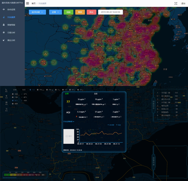 平臺具備GIS地圖展示、環(huán)境數(shù)據(jù)綜合監(jiān)視、報警通知、生態(tài)環(huán)境預測預報、監(jiān)測數(shù)據(jù)溯源回放、綜合報表生成/導出、生態(tài)環(huán)境指標排名、數(shù)據(jù)對比分析、移動APP端展示等應用功能,便于用戶對生態(tài)環(huán)境數(shù)據(jù)進行第一時間掌握,有效提高監(jiān)管能力,并提供多維度的數(shù)據(jù)統(tǒng)計、分析,幫助用戶進行生態(tài)環(huán)境治理、改善。