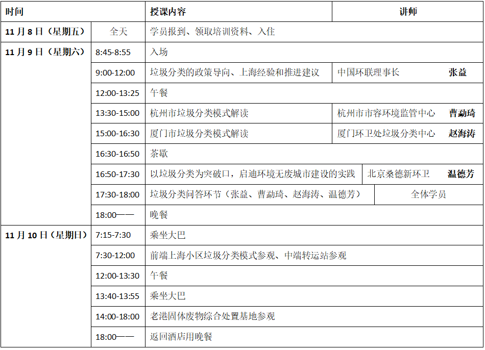 (一)培訓班將邀請垃圾分類主管部門相關負責人和行業(yè)知名專家授課,培訓班結束后頒發(fā)中國戰(zhàn)略性新興產業(yè)環(huán)保聯盟垃圾分類培訓結業(yè)證書。