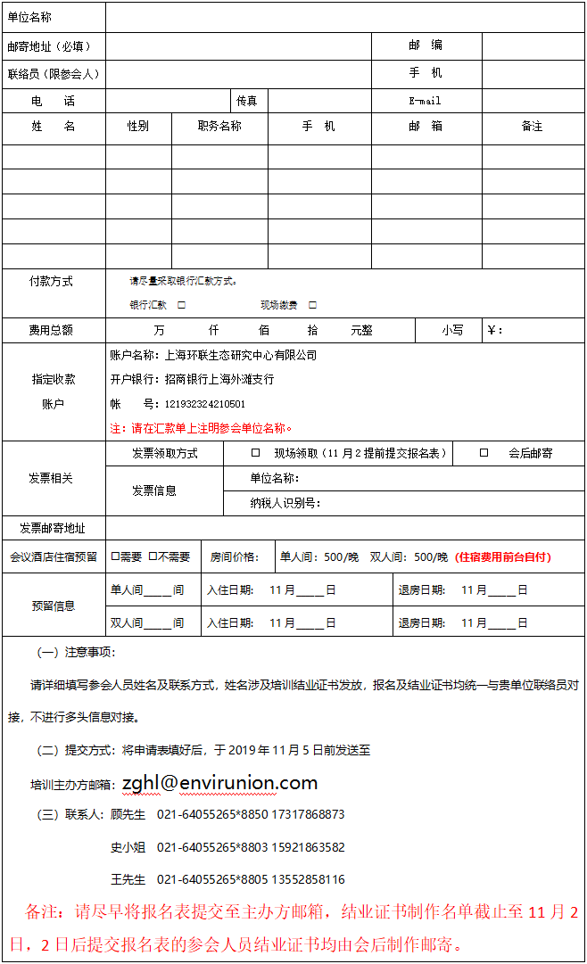 (三)請于開班前3天將報名表發(fā)至中國戰(zhàn)略性新興產業(yè)環(huán)保聯盟指定報名郵箱或傳真至021-64055710。