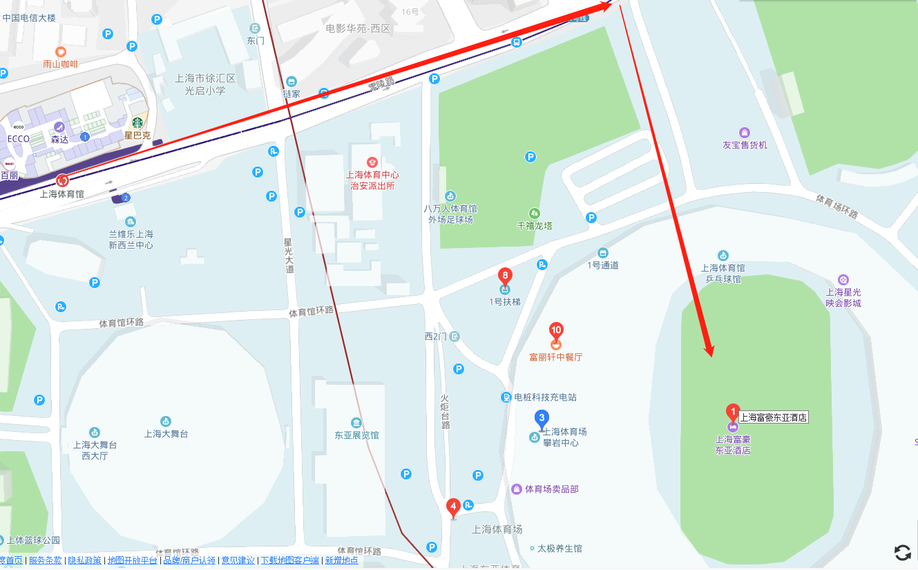 4.出租/駕車:上海市徐匯區(qū)火炬臺路零陵路800號(上海體育場內)上海富豪東亞酒店