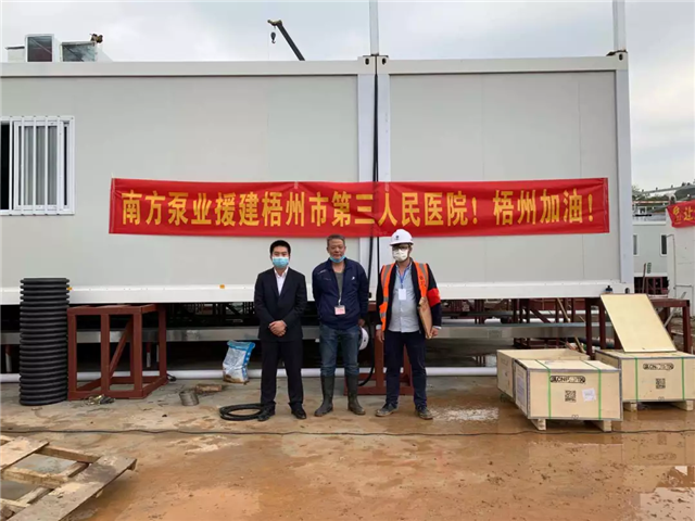 同時(shí),2月中下旬,梧州市啟動(dòng)第三人民醫(yī)院應(yīng)急醫(yī)院建設(shè)項(xiàng)目建設(shè)工作,因現(xiàn)階段物資缺乏,南方泵業(yè)股份有限公司經(jīng)溝通了解到情況后,緊急協(xié)調(diào)生產(chǎn)為醫(yī)院提供水泵物資并且無償捐贈(zèng),由于工期緊,任務(wù)重,南方泵業(yè)積極協(xié)調(diào)生產(chǎn)及運(yùn)輸,確保物資準(zhǔn)時(shí)到位,保障醫(yī)院建設(shè)工作,保證疫情工作的順利開展。