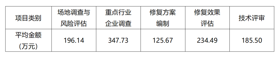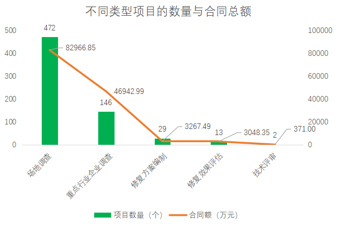 遺憾:本次數(shù)據(jù)搜集過(guò)程對(duì)環(huán)境監(jiān)理項(xiàng)目的關(guān)注度不夠,數(shù)據(jù)較差,因此未納入統(tǒng)計(jì),但我們估算其項(xiàng)目數(shù)量與修復(fù)方案編制項(xiàng)目接近。