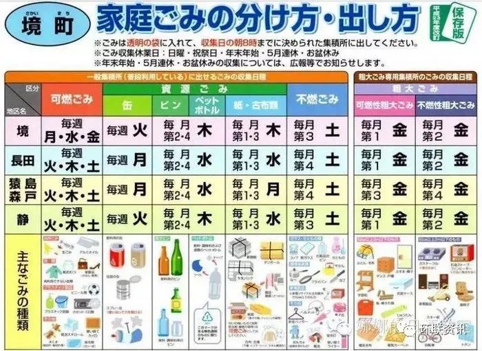 垃圾分類是門(mén)學(xué)問(wèn),處置垃圾同樣也是門(mén)學(xué)問(wèn)。日本的每戶家庭里,幾乎都可以看到這樣一個(gè)日歷表:每一日清晰地記載了可丟棄垃圾的類型,一周七日,日日不同。居民們必須嚴(yán)格按照日歷表要求,在第二天規(guī)定時(shí)間之前將垃圾堆放到指定地點(diǎn),否則又將等到下一周。