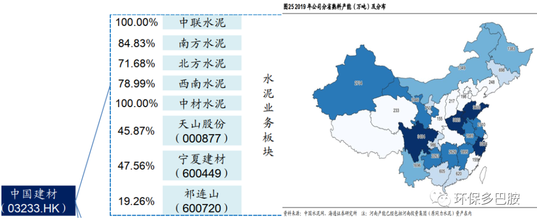 2019年海螺創(chuàng)業(yè)與水泥產(chǎn)能宇宙第一的中國(guó)建材(2019年公司水泥產(chǎn)能5.2億噸)成立合資公司:海建香港(股份各占50%,由海螺創(chuàng)業(yè)并表) ,并通過海建香港成立安徽海中環(huán)保開展業(yè)務(wù),全權(quán)負(fù)責(zé)投資、經(jīng)營(yíng)及管理中國(guó)建材從事水泥相關(guān)業(yè)務(wù)的若干附屬公司現(xiàn)有及未來的固廢處置業(yè)務(wù),預(yù)計(jì)規(guī)劃處置總產(chǎn)能不少于 300 萬噸/年。