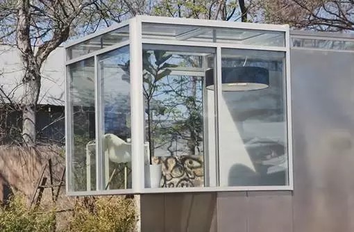 Jeff坐在玻璃房陽臺(tái)中