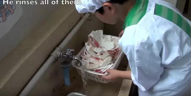 下面是日本小學(xué)學(xué)清洗牛奶盒的過程:牛奶喝干凈之后,撕開,清洗,晾曬,收集在一起,等著回收。