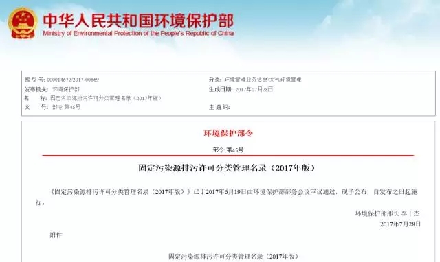 《固定污染源排污許可分類管理名錄(2017年版)》已于2017年6月19日由環(huán)境保護(hù)部部務(wù)會(huì)議審議通過,現(xiàn)予公布,自發(fā)布之日起施行。