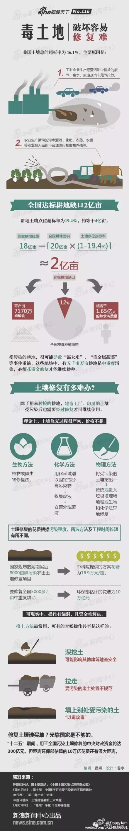 2016-12-09 全球農(nóng)業(yè)趣聞英媒稱,中國將展開全國性調(diào)查,以查明重金屬、化學(xué)物質(zhì)和其他有毒污染物熱點(diǎn)區(qū)域。目前中國正試圖清理土壤污染,這可能需要投入1萬億美元。