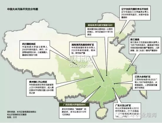 財(cái)新網(wǎng)記者根據(jù)實(shí)地探訪和公開發(fā)表的論文,整理出了一份《中國大米污染不完全分布圖》。該分布圖顯示,遼寧、湖南、浙江、江西、四川、貴州、廣東、廣西等省份的部分地區(qū),不同程度地存在重金屬污染問題,其中絕大多數(shù)都存在鎘污染,并且以廠礦地區(qū)為主。