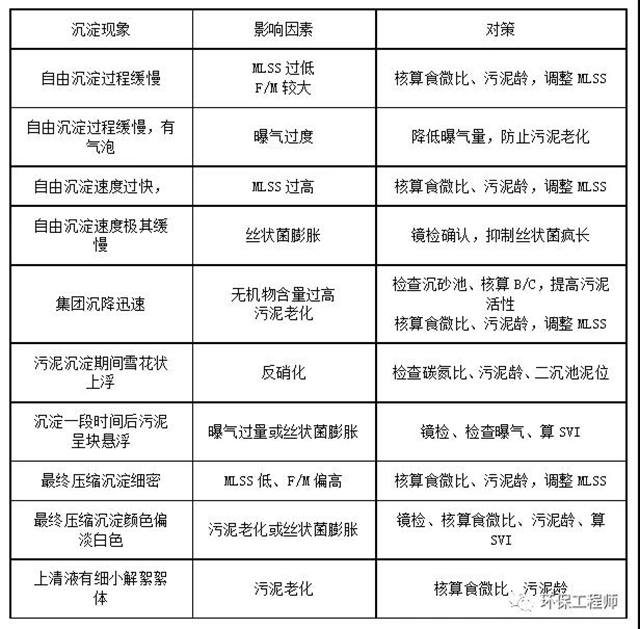 SV30即30分鐘活性污泥沉降比,正規(guī)的做法是用1000mL量筒取樣,靜置30分鐘后,觀測沉淀污泥占整個混合液的體積比例,單位是%。SV30可較直觀的反應(yīng)目前的工藝效果,是重要的檢測參數(shù);發(fā)生工藝異常時,也應(yīng)首先對這個指標進行觀測。