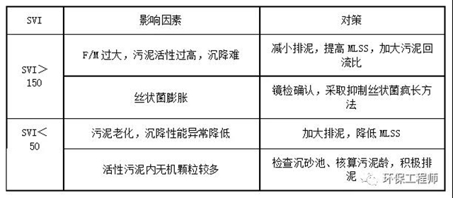 SVI主要反映污泥的松散程度,當(dāng)MLSS很高時,僅用SV判斷污泥沉降性是不準確的,必須結(jié)合SVI。對SVI的調(diào)控主要通過對MLSS的調(diào)整。