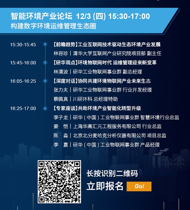 具體聊什么?在12月3日15:30—17:00時召開的智慧環(huán)境產(chǎn)業(yè)論壇(←點擊進入報名詳情頁)上,8位業(yè)界專家及企業(yè)代表將用翔實的數(shù)據(jù)和生動案例,從4大熱點話題解析“構建 數(shù)字環(huán)境運維管理生態(tài)圈”。而在每個議題的專家報告中都緊緊圍繞著技術創(chuàng)新以及推動產(chǎn)業(yè)升級,提前劇透一下:
