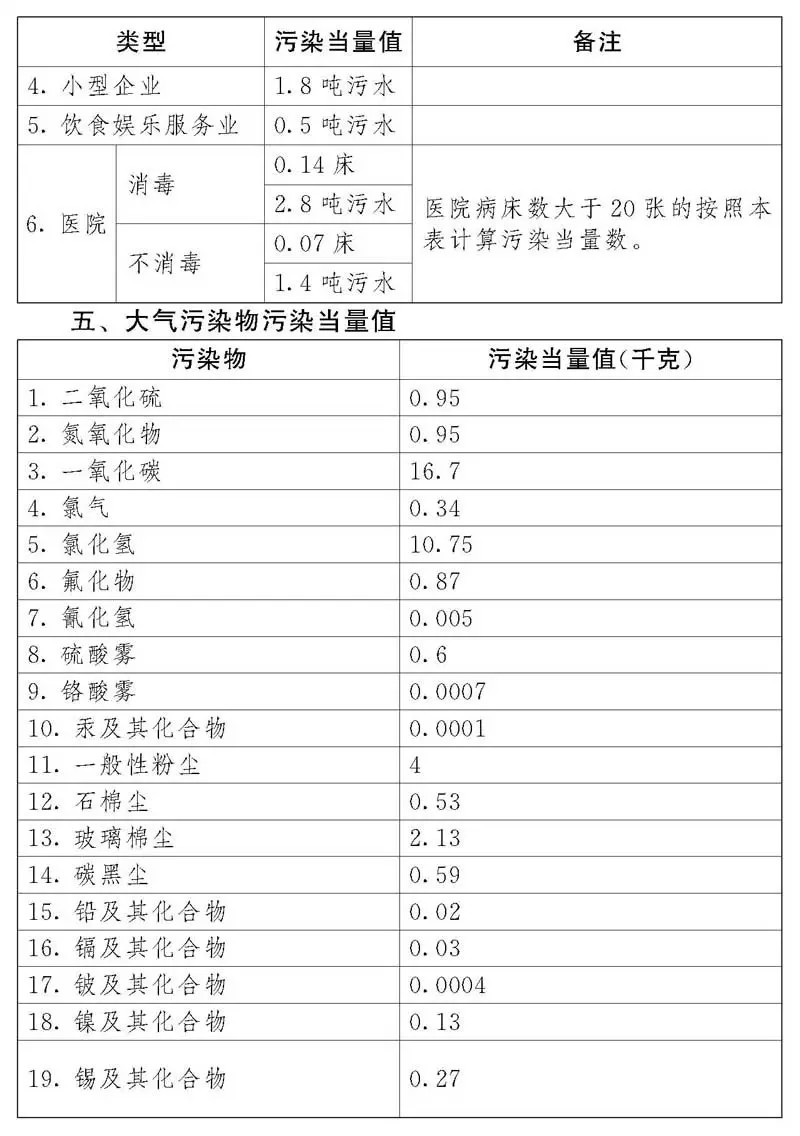 (一)污染當(dāng)量,是指根據(jù)污染物或者污染排放活動對環(huán)境的有害程度以及處理的技術(shù)經(jīng)濟性,衡量不同污染物對環(huán)境污染的綜合性指標(biāo)或者計量單位。同一介質(zhì)相同污染當(dāng)量的不同污染物,其污染程度基本相當(dāng)。