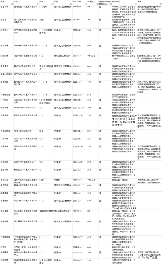 旗下的另一間企業(yè),淮北宇能環(huán)保能源有限公司(800噸處理量,兩臺循環(huán)流化床)已經(jīng)整體停運,相關(guān)垃圾處理業(yè)務(wù)也轉(zhuǎn)由該公司在此地遷址重建的新廠——淮北旺能環(huán)保能源有限公司,并已于2020年正式投運,新廠處理量1500噸,兩臺750噸爐排爐。錦江環(huán)境:旗下昆明鑫興澤環(huán)境資源產(chǎn)業(yè)有限公司,共有三臺爐,處理量為1200噸,已于2020年06月02日不再報送數(shù)據(jù),并已在生態(tài)環(huán)境部生活垃圾焚燒發(fā)電廠自動監(jiān)測信息公示平臺,進(jìn)行了主動公示。據(jù)悉,該項目屬于應(yīng)政府要求整體異地搬遷、拆舊換新的項目,且新廠已經(jīng)投運,新項目的焚燒爐為三臺750噸爐排爐。不過,研究團(tuán)隊尚未在公示平臺查詢到相關(guān)信息,估計還是處于試運行狀態(tài),相關(guān)煙氣、爐溫、工況等數(shù)據(jù)尚未上網(wǎng)。中國天楹:旗下啟東和深圳項目,目前均整體停運,并已在生態(tài)環(huán)境部生活垃圾焚燒發(fā)電廠自動監(jiān)測信息公示平臺,進(jìn)行了主動公示。據(jù)悉,兩個項目都是并購項目,前期設(shè)備和環(huán)保設(shè)施欠債較多,需要進(jìn)行就地改造,整體拆除原有設(shè)備,原址新建焚燒爐臺套產(chǎn)線,基本算是原址建造新廠,且今年內(nèi)都將陸續(xù)投產(chǎn)。不過,研究團(tuán)隊尚未在公示平臺查詢到相關(guān)信息,估計還是處于試運行狀態(tài),相關(guān)煙氣、爐溫、工況等數(shù)據(jù)尚未上網(wǎng)。偉明環(huán)保:旗下溫州甌海項目,停運了一臺160噸的爐排爐,該爐于2000年投產(chǎn),至今已運行20年。綠色動力:旗下海寧綠色動力再生能源有限公司(處理量六百噸,兩臺09年投運爐排爐)已經(jīng)停運。同時,在海寧當(dāng)?shù)亓肀傩轮?,新建了項目海寧綠動海云環(huán)保能源有限公司,已于今年六月投入運營,新項目處理量為1500噸,兩臺750噸爐排爐。相關(guān)信息已在生態(tài)環(huán)境部生活垃圾焚燒發(fā)電廠自動監(jiān)測信息公示平臺,進(jìn)行了主動公示。