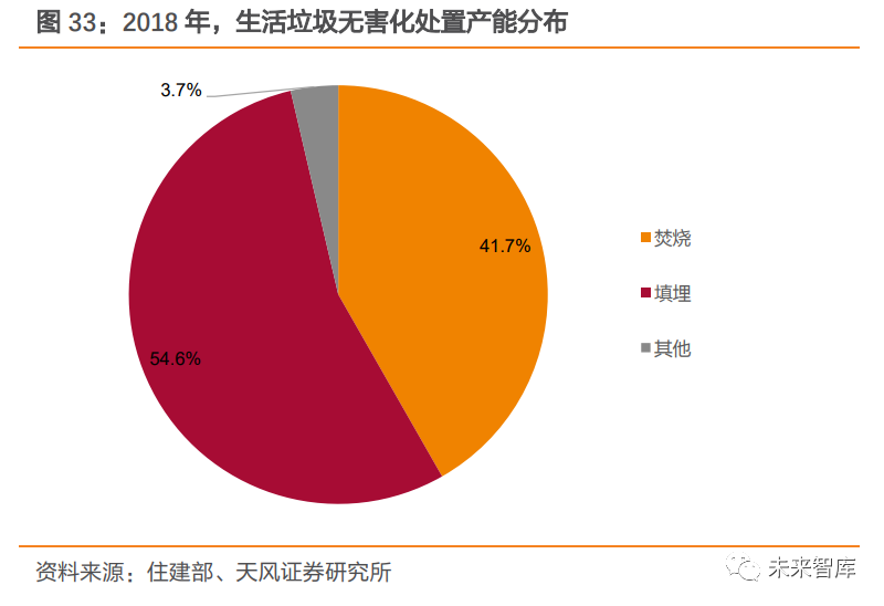土地資源緊張+選址困難,填埋產(chǎn)能新增難度較大。一方面,我國(guó)土地資源較為緊張,城鎮(zhèn)化又進(jìn)一步壓縮了城市公用設(shè)施用地的供給空間,垃圾填埋廠用地受限。另一方面,垃圾填埋場(chǎng)選址難度較大,需考量地質(zhì)、地形、水文、氣候、城市規(guī)劃、交通運(yùn)輸?shù)雀黝?lèi)因素,不符合《生活垃圾衛(wèi)生填埋處理技術(shù)規(guī)范》等相關(guān)規(guī)定中選址要求的填埋場(chǎng),很可能無(wú)法滿(mǎn)足環(huán)評(píng)要求,填埋產(chǎn)能新增難度較大。環(huán)保治理力度加大+填埋場(chǎng)超負(fù)荷運(yùn)行,垃圾填埋存量項(xiàng)目封場(chǎng)提速。非正規(guī)垃圾填埋場(chǎng)由于配套設(shè)施不健全、執(zhí)行標(biāo)準(zhǔn)缺失、不規(guī)范填埋作業(yè)等多種原因,對(duì)周邊環(huán)境存在著較為嚴(yán)重的污染隱患。隨著居民環(huán)保訴求提升以及政府層面環(huán)保治理力度加大,不符合環(huán)保要求的填埋場(chǎng)陸續(xù)被關(guān)停。我國(guó)在《“十二五”全國(guó)城鎮(zhèn)生活垃圾無(wú)害化處理設(shè)施建設(shè)規(guī)劃》首次提出存量垃圾治理,預(yù)計(jì)實(shí)施存量治理項(xiàng)目 1882 個(gè),衛(wèi)生填埋場(chǎng)封場(chǎng)項(xiàng)目有 802 個(gè)?!笆逡?guī)劃”預(yù)計(jì)實(shí)施存量治理項(xiàng)目 803 個(gè)。此外,垃圾填埋場(chǎng)超負(fù)荷運(yùn)轉(zhuǎn)現(xiàn)象突出,庫(kù)容趨飽和,加速封場(chǎng)進(jìn)程。由于近些年垃圾產(chǎn)量增速較高,以及部分地區(qū)焚燒設(shè)施尚在規(guī)劃建設(shè)中,垃圾填埋場(chǎng)超負(fù)荷運(yùn)轉(zhuǎn)現(xiàn)象突出, 庫(kù)容加速飽和,需提前封場(chǎng)。以 2020 年 2 月封場(chǎng)的西安市江村溝垃圾填埋場(chǎng)為例,作為曾經(jīng)國(guó)內(nèi)以及亞洲最大的垃圾填埋場(chǎng),其設(shè)計(jì)日處理量 2600 噸。但隨著城市發(fā)展以及人口快速增長(zhǎng),垃圾處理量已由建成之初的 800 噸/日上升至 2019 年 10000 噸/日左右,超負(fù)荷運(yùn)轉(zhuǎn)下提前 20 年迎來(lái)飽和。垃圾填埋“新增難+存量減”背景下,垃圾焚燒替代屬性凸顯,產(chǎn)能占比有望進(jìn)一步提升。 垃圾焚燒作為垃圾填埋的最主要替代方式,具有占地面積小、處理效率高、環(huán)境污染小、 能源利用高等多方面優(yōu)勢(shì)。2020 年 8 月,國(guó)家發(fā)展改革委、住房城鄉(xiāng)建設(shè)部和生態(tài)環(huán)境部 等三部委聯(lián)合印發(fā)《城鎮(zhèn)生活垃圾分類(lèi)和處理設(shè)施補(bǔ)短板強(qiáng)弱項(xiàng)實(shí)施方案》,明確提出“原 則上地級(jí)以上城市以及具備焚燒處理能力的縣(市、區(qū)),不再新建原生生活垃圾填埋場(chǎng), 現(xiàn)有生活垃圾填埋場(chǎng)主要作為垃圾無(wú)害化處理的應(yīng)急保障設(shè)施使用?!苯刂聊壳埃延卸鄠€(gè)省市提出“原生生活垃圾零填埋”的規(guī)劃目標(biāo),垃圾焚燒替代屬性凸顯。