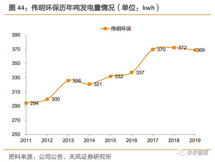 3.1.2. 運(yùn)營(yíng)占比提升+補(bǔ)貼發(fā)放提速,垃圾發(fā)電企業(yè)報(bào)表有望迎來(lái)修復(fù)運(yùn)營(yíng)占比提升,改善企業(yè)盈利能力及現(xiàn)金流情況。隨著企業(yè)在建項(xiàng)目陸續(xù)達(dá)產(chǎn),疊加國(guó)內(nèi)新增產(chǎn)能增速放緩背景下,項(xiàng)目新建數(shù)量增速或?qū)⒎啪彛髽I(yè)運(yùn)營(yíng)項(xiàng)目占比有望提升。相較于投產(chǎn)期,運(yùn)營(yíng)期資本開(kāi)支壓力減小,企業(yè)現(xiàn)金流壓力將得到緩解;同時(shí)企業(yè)資產(chǎn)負(fù)債 率下降,有助于降低財(cái)務(wù)費(fèi)用,改善項(xiàng)目盈利能力。以偉明環(huán)保瑞安項(xiàng)目為例,該項(xiàng)目于 2010 年 8 月動(dòng)工建設(shè),于 2014 年 5 月開(kāi)始運(yùn)營(yíng)。進(jìn)入運(yùn)營(yíng)期后,瑞安公司(瑞安項(xiàng)目的運(yùn)營(yíng)主體)資產(chǎn)負(fù)債率有所下降,同時(shí)凈利率有所提升。存量項(xiàng)目拖欠的補(bǔ)貼解決后,企業(yè)現(xiàn)金流有望得到改善。補(bǔ)貼發(fā)放不僅可以通過(guò)改善現(xiàn)金流,降低財(cái)務(wù)杠桿來(lái)減少財(cái)務(wù)費(fèi)用,同時(shí)應(yīng)收賬款收回,前期應(yīng)收賬款計(jì)提減值沖回,也將增加公司當(dāng)期業(yè)績(jī)。截止 2020 年 4 月,全國(guó)垃圾焚燒運(yùn)營(yíng)規(guī)模 50 萬(wàn)噸/日,其中未納入目錄項(xiàng)目占比約 48%,累計(jì)拖欠補(bǔ)貼金額約 130 億元。從企業(yè)具體情況來(lái)看,我們測(cè)算出 2016-2020 年各家企業(yè)的累計(jì)拖欠補(bǔ)貼,并以累計(jì)拖欠補(bǔ)貼金額占 2019 年?duì)I收的比例作為利好彈性的觀測(cè)值。若存量補(bǔ)貼發(fā)放,對(duì)垃圾焚燒發(fā)電企業(yè)將帶來(lái)較大的現(xiàn)金流改善。3.2. 熱值增+技術(shù)優(yōu)化,噸發(fā)電量有望持續(xù)提升垃圾焚燒廠噸發(fā)電量及噸上網(wǎng)電量提升趨勢(shì)明顯。近年來(lái),我國(guó)垃圾焚燒企業(yè)噸發(fā)電量及 噸上網(wǎng)電量呈現(xiàn)出明顯提升趨勢(shì)。深圳市生活垃圾處理監(jiān)管中心的數(shù)據(jù)顯示,2011~2018 年間,垃圾焚燒企業(yè)的噸垃圾上網(wǎng)電量均值提升了 42Kwh。龍頭企業(yè)提升趨勢(shì)更明顯,偉 明環(huán)保噸發(fā)電量由 2011 年 294Kwh 提升 75Kwh 至 2019 年 369Kwh,噸上網(wǎng)電量由 2011 年 239Kwh 提升 52Kwh 至 2020H1 的 291Kwh;光大環(huán)境噸上網(wǎng)電量也由 2011 年 226Kwh 提升 94Kwh 至 2020H1 的 320Kwh。