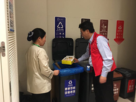 同時,上海中心大廈積極配合政府相關部門的現場指導檢查工作,不斷加強大廈內部的垃圾分類工作的管理。