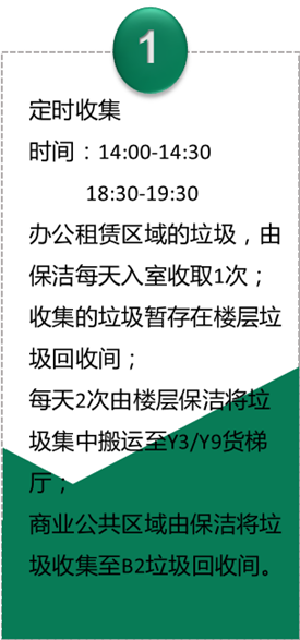 為了正確的處理好這些垃圾的分類投放,上海中心大廈采用了定時投放、集中存儲等方式與“高樓撤桶”相結合。通過更加便捷、精準的垃圾分類投放、分類收集方式,更好的激發(fā)了白領們垃圾分類的積極性。