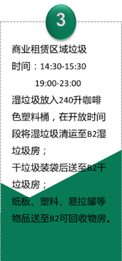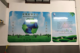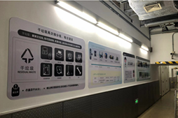 上海中心大廈對B2垃圾房(地下2層)進行改造,改造后的垃圾房針對不同垃圾進行分區(qū)管理,并添加了垃圾分類相關的宣傳海報及公示欄。結合BOMA(中國)標準將管理文件、警示標志,以及清潔消毒藥劑MSDS張貼上墻,引導白領、租戶正確投放垃圾。