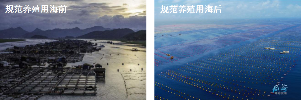 經過長期探索,威海市逐步形成了以《海岸帶保護條例》為保障,以《養(yǎng)殖水域灘涂規(guī)劃》和《海岸帶保護規(guī)劃》為引領,以“灣長制”、信用分級分類管理、船舶污染物轉運聯(lián)單等制度為抓手的“海洋廢棄物”管控制度體系,為推進海洋綠色發(fā)展奠定了堅實制度基礎。圖 5 威海市規(guī)范養(yǎng)殖用海前后對比圖