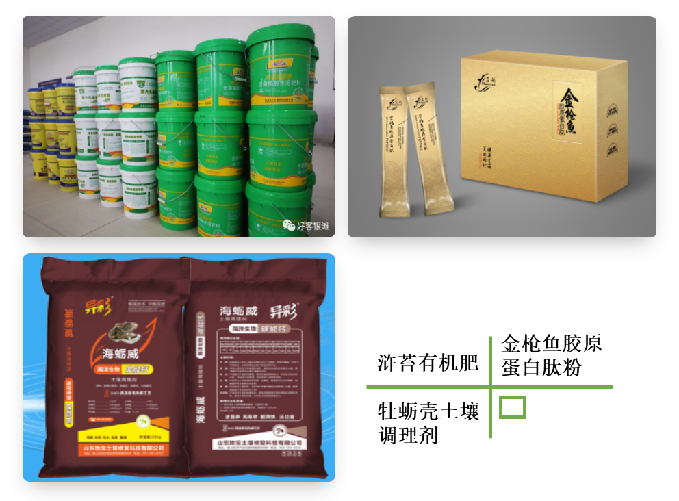 針對滸苔污染,支持溫喜生物科技有限公司,通過研發(fā)生物發(fā)酵技術,構建滸苔綜合利用產業(yè)鏈,生產有機肥、土壤調理劑,可年處理鮮滸苔10余萬噸,實現(xiàn)產值3500余萬元。針對廢棄牡蠣殼,依托山東地寶土壤修復科技有限公司,利用高溫增氧活化等技術,可日生產300噸功能性土壤調理劑,年銷售產品5萬余噸。針對金槍魚加工后剩余的魚骨、魚皮等,推動藍潤集團研發(fā)酶組合技術,開發(fā)生產金槍魚膠原蛋白肽粉、口服液、面膜等系列產品,附加值翻了數十倍,真正實現(xiàn)將一條金槍魚“吃干榨凈”。2. 制度模式創(chuàng)新
