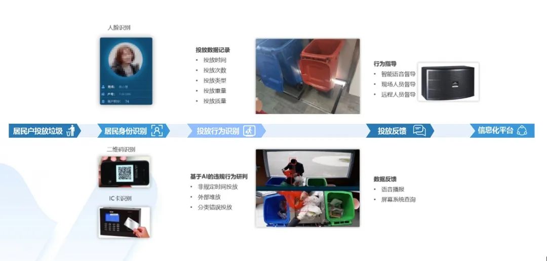 借助智能設(shè)備、AI設(shè)備、計量稱重設(shè)備、質(zhì)量評價設(shè)備的綜合應(yīng)用,可以精準(zhǔn)識別居民戶信息、投放垃圾類型、投放垃圾質(zhì)量、袋數(shù)等等,再結(jié)合差別化收費,如廚余垃圾不收費、可回收物返還積分,不僅為每個月精確計算每戶居民收費金額提供科學(xué)的數(shù)據(jù)支撐,還可以借助信息化平臺實現(xiàn)投放用戶的身份、投放垃圾重量與質(zhì)量的追蹤溯源,為分類成效的掌控與精準(zhǔn)宣教的實施提供基礎(chǔ)保證。