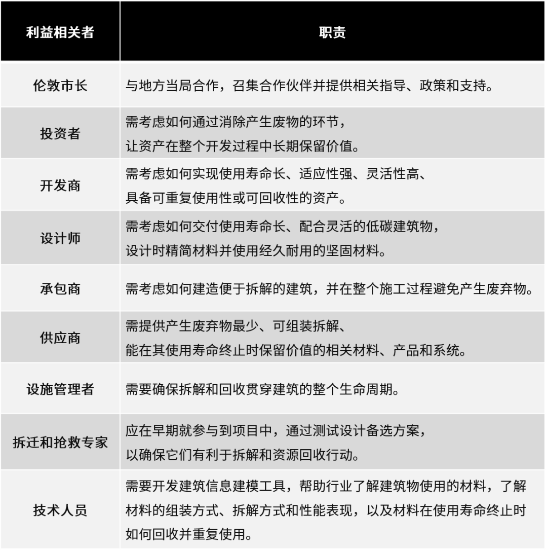 為優(yōu)先解決倫敦的主要廢棄物問題,該《先導(dǎo)手冊》主要面向建成環(huán)境行業(yè)相關(guān)人士,包括參與建筑、基礎(chǔ)設(shè)施等實(shí)體建設(shè)工作的業(yè)主、設(shè)計(jì)團(tuán)隊(duì)、開發(fā)商、建造團(tuán)隊(duì)等利益相關(guān)者,闡釋循環(huán)經(jīng)濟(jì)的價(jià)值、商機(jī)與實(shí)施策略。