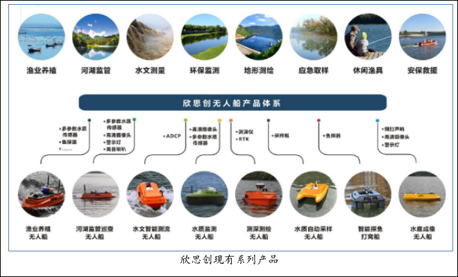 2019年6月推出受到市場(chǎng)十分青睞的“欣思創(chuàng)河湖監(jiān)管巡查無(wú)人船”,產(chǎn)品兼具水質(zhì)在線監(jiān)測(cè)、水面巡查管理、水底暗管排除等功能,在4G/5G信號(hào)覆蓋的水域,通過(guò)搭載的各類專業(yè)傳感器與高清攝像頭、遠(yuǎn)程喊話等相關(guān)水面巡查設(shè)備,在信息管理中心實(shí)現(xiàn)遠(yuǎn)程水質(zhì)實(shí)時(shí)監(jiān)測(cè)與水域巡查監(jiān)管的工作目標(biāo)。目前此產(chǎn)品已經(jīng)在水生態(tài)環(huán)境智慧監(jiān)測(cè)、應(yīng)急水污染事故監(jiān)測(cè)、河長(zhǎng)制管理、河湖監(jiān)管體系等環(huán)保監(jiān)管領(lǐng)域得到了廣泛的應(yīng)用。