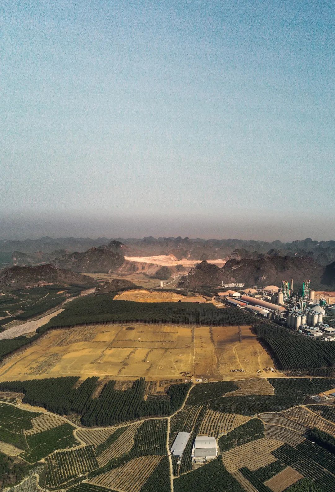 滿(mǎn)懷信心的設(shè)計(jì)團(tuán)隊(duì)雖然已經(jīng)看過(guò)很多廣西的資料圖片,但是到達(dá)項(xiàng)目場(chǎng)地的時(shí)候還是被大地的秀美所震撼。建設(shè)場(chǎng)地處在一片農(nóng)林用地包圍之中,臨近地塊只有一座水泥廠,而北側(cè)則是茫茫的喀斯特峰叢,一眼望不到邊際。