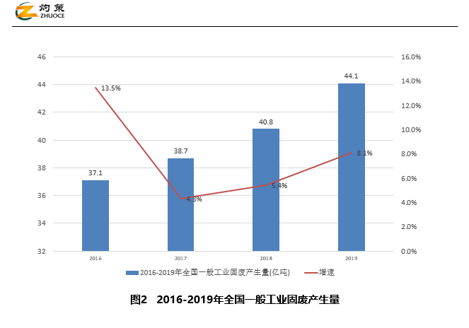 灼策咨詢預(yù)測,預(yù)計2020年全國一般工業(yè)固體廢物產(chǎn)量至少達(dá)47.7億噸,2025年超70億噸。